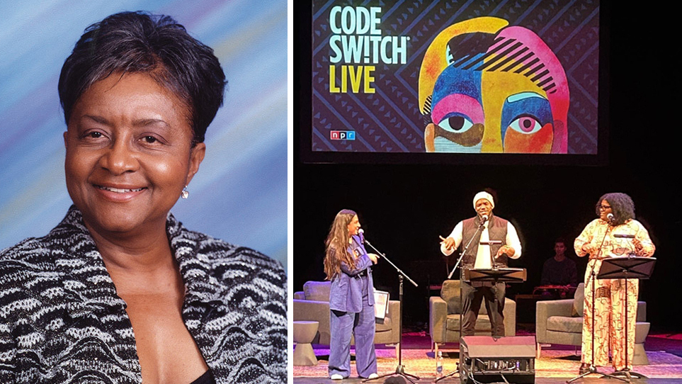 Code Switch is live on stage in Little Rock, Ark. (right). They interviewed Dr. Sybil Jordan Hampton (left) about what it was like to go to school during desegregation efforts in the 1950s and 60s.